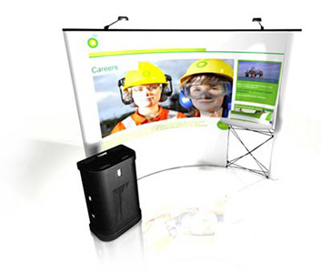 With a bit of imagination and with our assistance, you can use pop up stands to construct larger and more complex designs. Pop ups allow for greater flexibility in size and shape and you can link frames together easily using magnetic bars or simply by bridging a gap using a linking graphic panel.