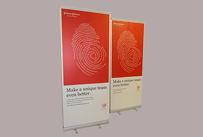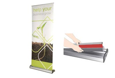 Cassette roller banners are a similar type of exhibition stand, but the base holds a cassette that can be easily removed and replaced – something you can easily do yourself. The idea is that you can buy one stand and several different roller cassettes, all loaded with individual designs, allowing you to ‘chop and change’ graphics.